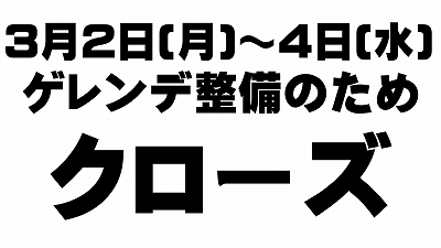 - 3月2日(月)・3日(火)・4日(水)クローズのお知らせ