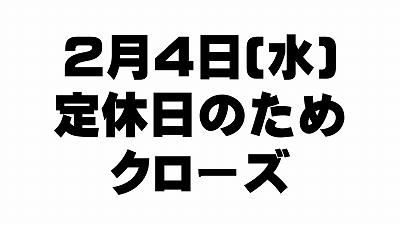 - 毎週水曜日を定休日とさせていただいておりますが、12月31日(水)と1月7日(水)は年末年始期間のため営業いたします。